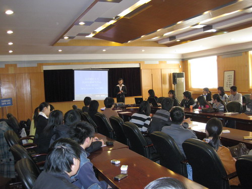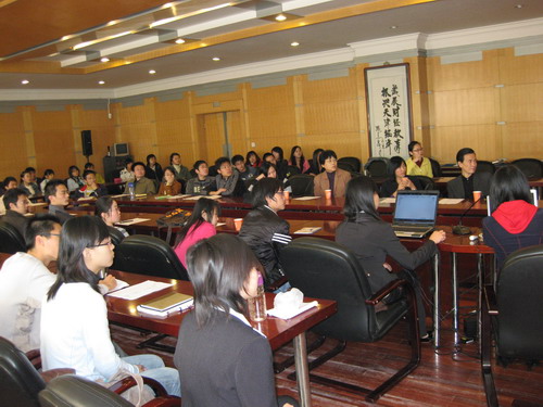 上午九时,会议在活泼而热烈的气氛中正式开始。首先由杨培培和姜丽艳同学简要总结了民间创新研究中心的大学生志愿者们两年来所做的调查和研究工作。两年来,民间创新研究中心的老师和同学经过多次深入到农村调查,在艰苦的条件下取得了宝贵的一手资料,无论是酷暑还是严寒我们的老师和志愿者一如既往的调查寻访倾听农民们的心声。在这些实地考察的过程中志愿者们可谓是收获良多,从农民朋友那里学习到很多宝贵的知识。并且志愿者通过这一系列的活动,还初步形成了天津财经大学志愿者参与民间创新项目研究的天财模式。该模式还在世界银行的结项大会上得到各国专家学者的一致认可,并且在国际社会上得到广泛的推广。在这两年期间参与其中的学生志愿者在社会实践和调研中得到了很好的锻炼并把所学的理论知识与实践相结合形成自己的知识财富。