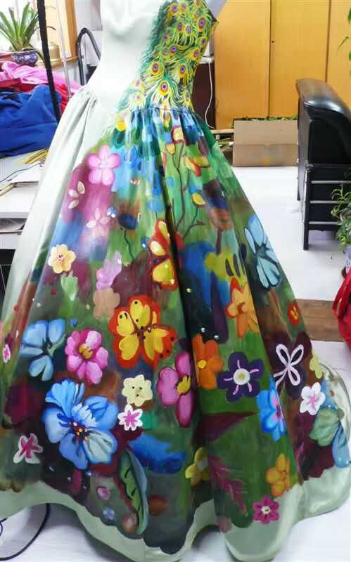 姐姐:以前也做过婚纱设计,也做过其他很多设计,然后觉得太累了,还需要很多灵感,挺废脑子的,有孩子以后吧,大多数的精力就放在孩子身上了,就不做了。现在主要是上班,就负责在婚纱啊,礼服啊什么的手绘图案,人家设计好了,我只负责绘画。还有就是能涉及到跟手绘有关的,我都做。