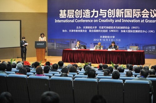 12月3日-5日,"基层创造力与创新国际会议"在我校召开。此次会议由天津财经大学与印度可持续技术与机制研究会(SRISTI)共同举办,天津市教育委员会、联合国教科文组织(UNESCO)和加拿大国际发展研究中心(IDRC)共同协办。印度小蜜蜂网络创始人、印度国家创新基金会执行副主席Anil K. Gupta教授、联合国教科文组织科学分析和政策部官员Yoslan Nur博士、联合国粮食与农业组织官员Xuan Li博士、印度科技部Vinita Sharma司长等来自十余个国家的100多位专家、学者,以及来自辽宁、河北、福建、宁夏、河南、天津等地区的50余位基层创新者代表出席了本次会议。